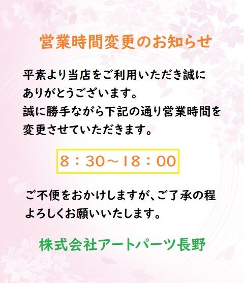 営業時間変更のお知らせ
