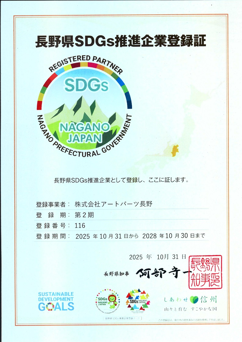 私たちアートパーツ長野はSDGs達成に向けて、宣言を致します。